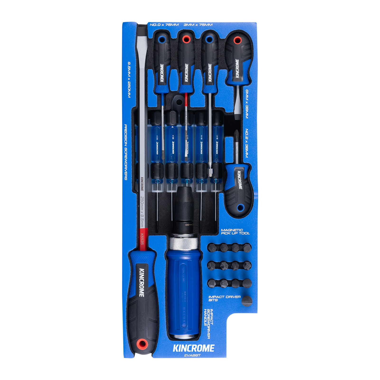 Kincrome EVA Trays have been specifically designed to protect and maintain your Kincrome Professional Quality Tools®. These tool trays are custom made to suit Kincrome Tool Chests and Boxes. Kincrome EVA Trays make selection of your tools easier and quicker - saving you valuable time.